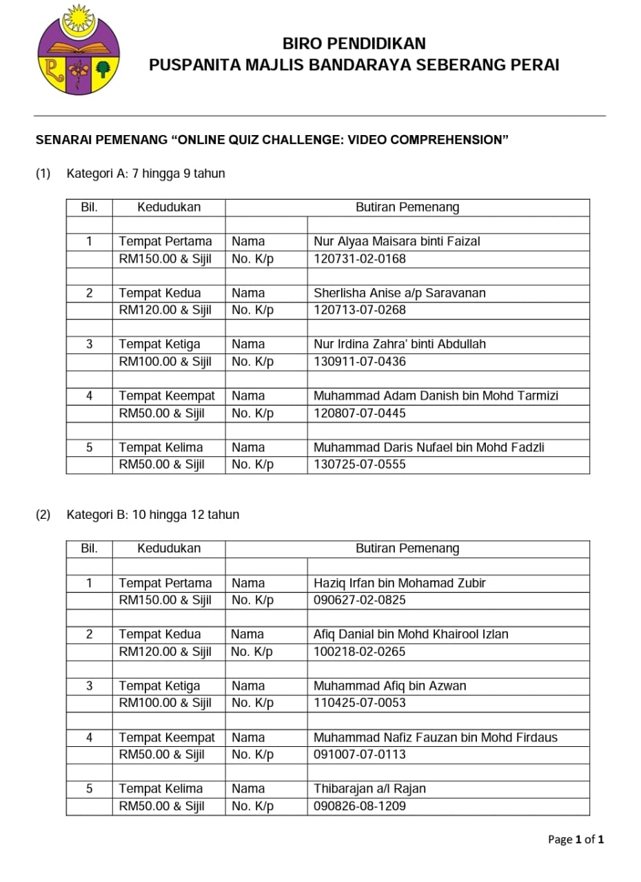 Paparan menarik menggunakan Mozilla Firefox dengan resolusi 1024x768 piksel. Hakcipta © 2019 PUSPANITA Majlis Bandaraya Seberang Perai.
